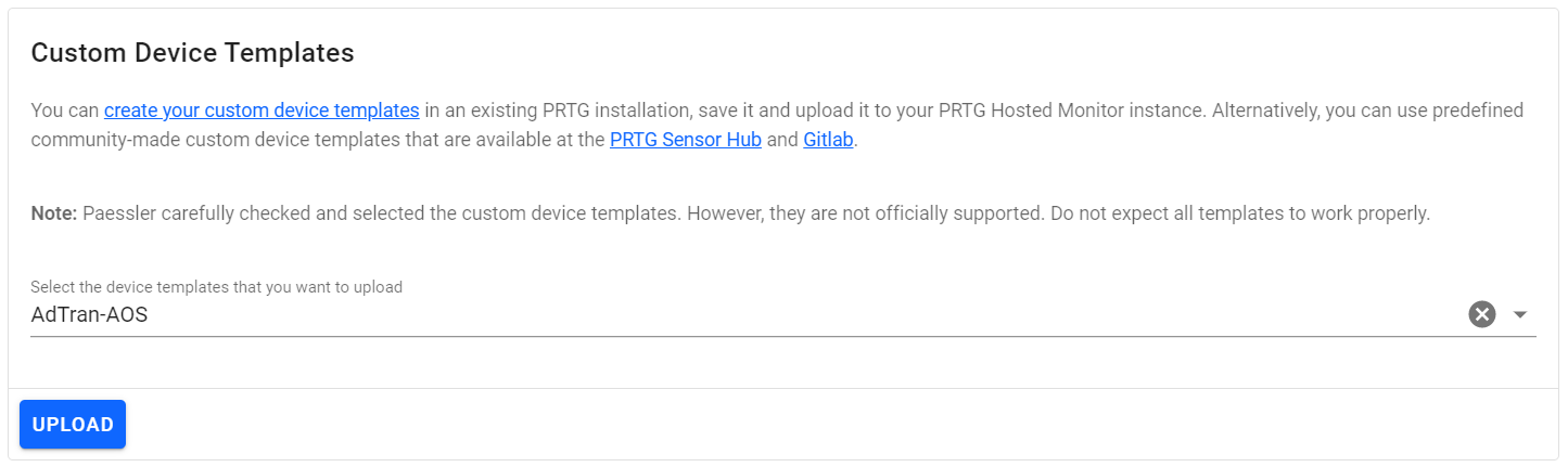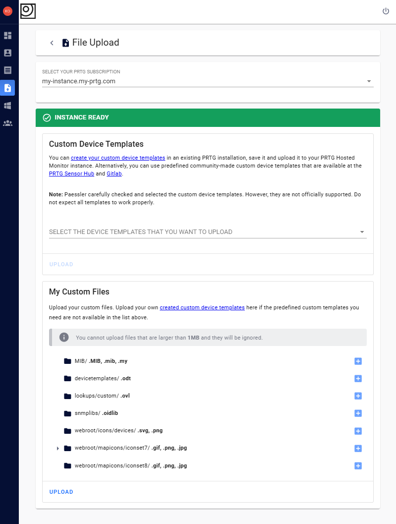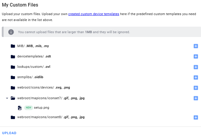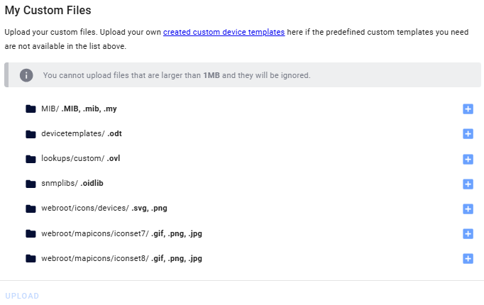 Here you can upload custom device templates and custom files.