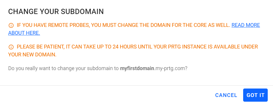 Change PRTG Subdomain