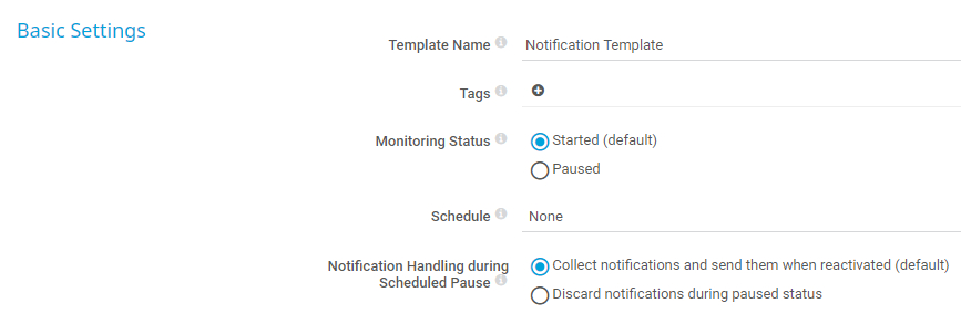 The overall status of the notification template must be Started (default) to apply any schedule settings.