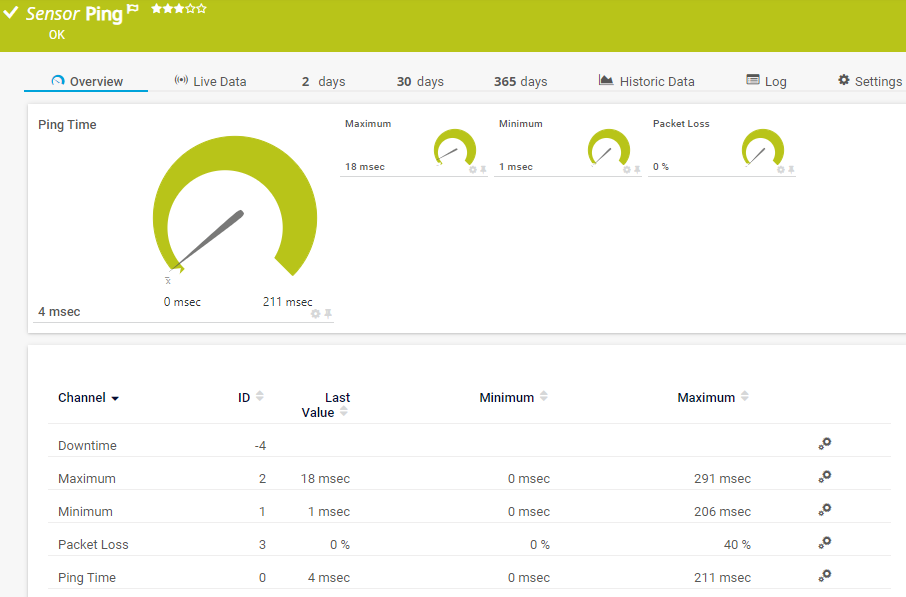 i_round_blueIf you select this setting, all of the ping requests must be lost for the sensor to show the Down status. For example, if only one ping request is answered in a series of five, the sensor still shows the Up status.
